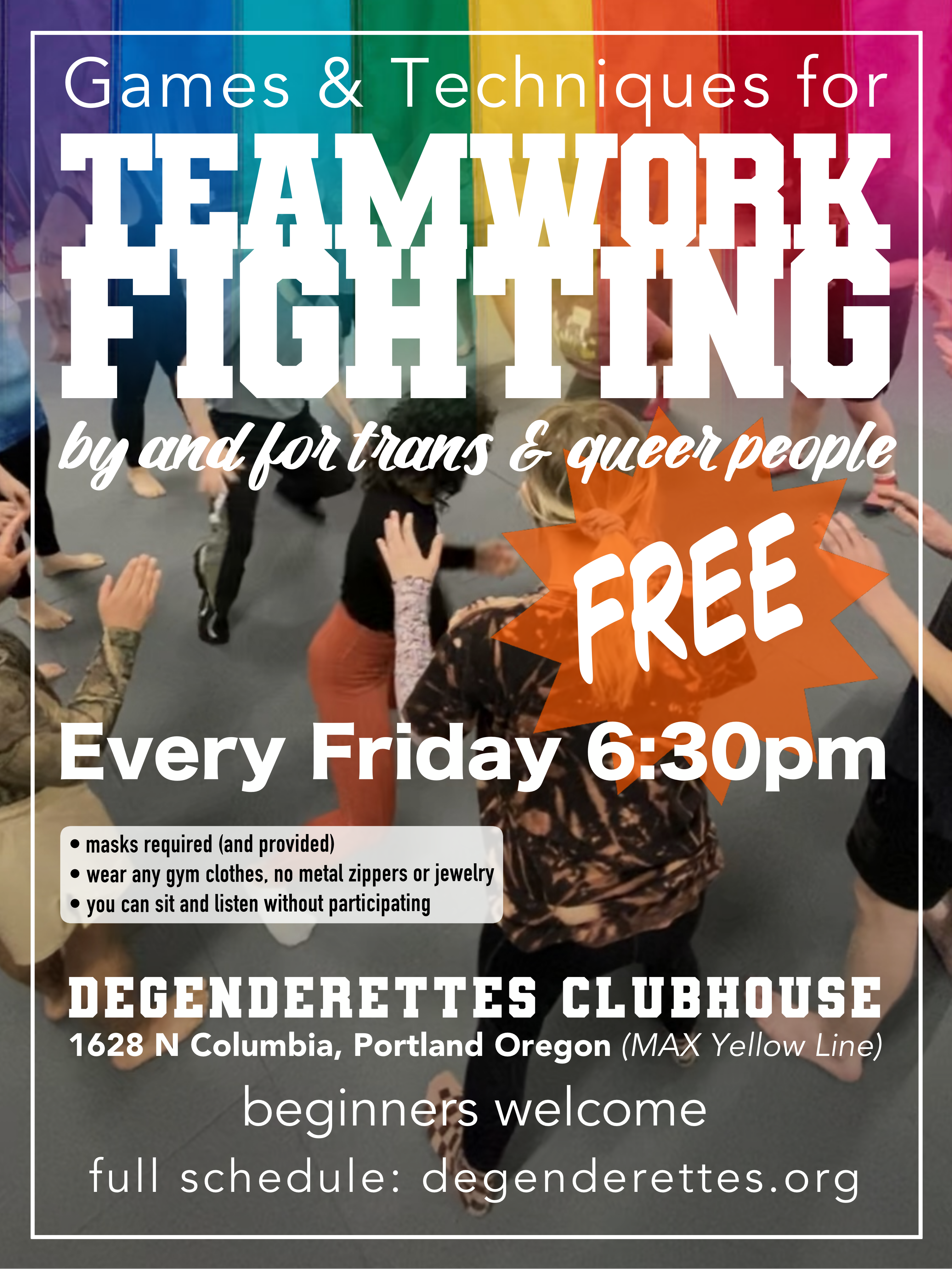 The Degenderettes Clubhouse (Portland, OR) is a training facility for trans & queer people (and direct allies).
